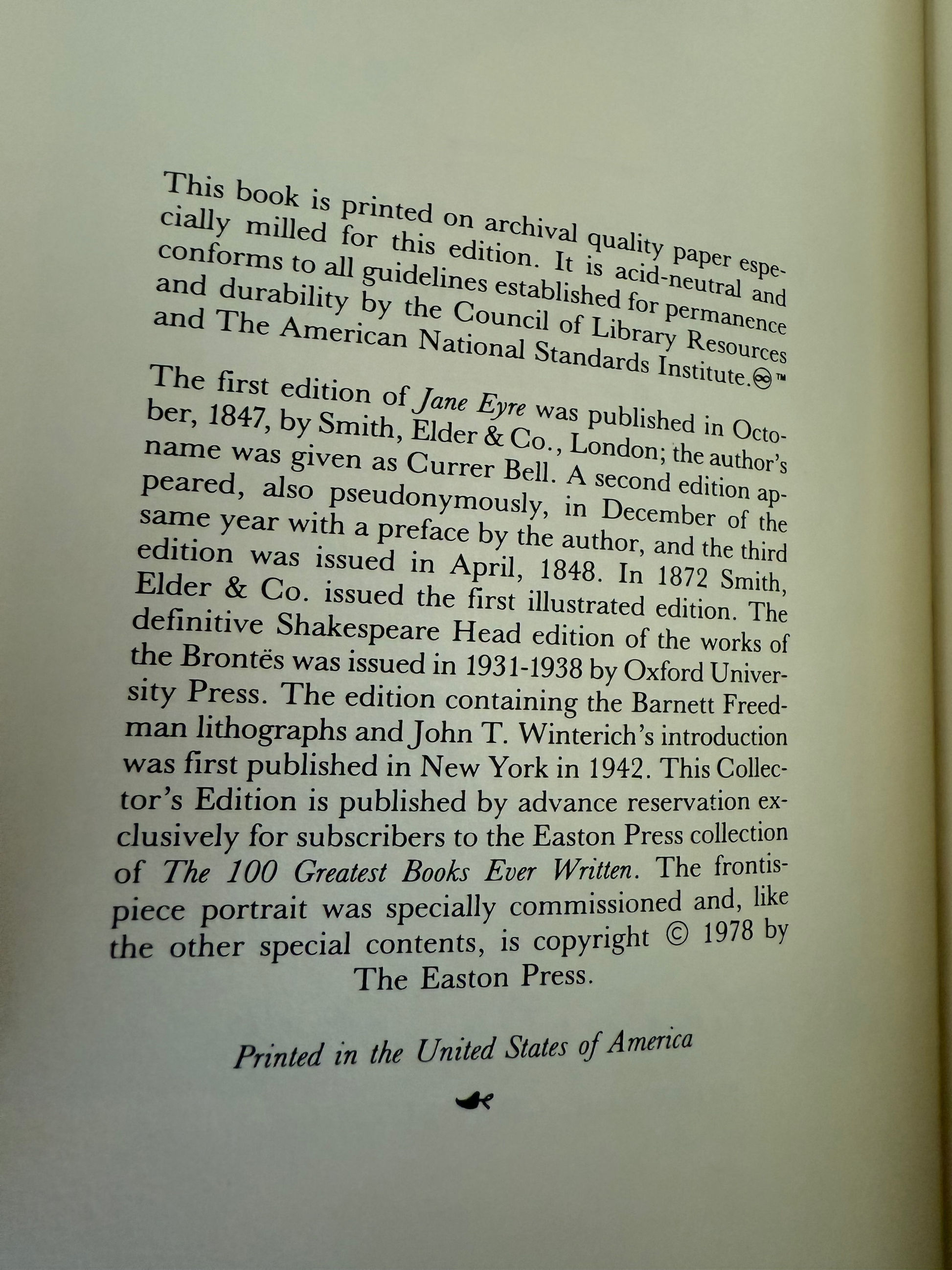 Jane Eyre by Charlotte Bronte. Easton Press 1978, Red leather. Pre-owned. Great Condition.